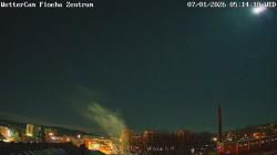Blick nach Süden auf die "Alte Baumwolle" - einer ehemaligen Baumwollspinnerei, die jetzt das neue Stadtzentrum von Flöha ist sowie die Augustusburg (ganz klein in der Mitte)